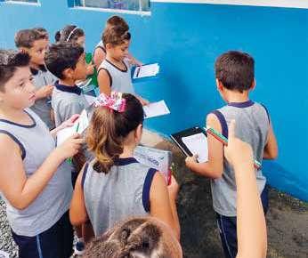 Estudantes do quinto ano da Escola Municipal Amador Aguiar compartilham desenhos e mensagens em comemoração ao aniversário da cidade.