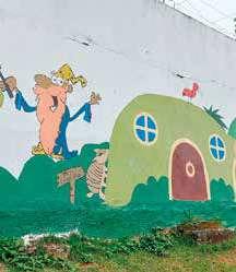 EM Pauline Parucker Boehmerwald pontes” vem conquistando a comunidade escolar da unidade Estudantes do primeiro ao nono ano participam das pinturas tanto no interior quanto no exterior da escola, As pinturas de árvores, flores e animais da Mata Atlântica estão trazendo mais cor e alegria para alunos, funcionários e familiares expostas na “Galeria florestal” A ideia é identificar os bichos para Neste ano, o tema escolhido foi “Floresta encantada” que professores de diferentes turmas possam utilizar o muro da unidade como ferramenta de estudo