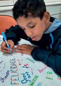 Após assistirem ao documentário “Lila”, que retrata atos de bondade da personagem principal, os alunos teceram uma toalha da gentileza, com palavras e frases de acolhimento. A atividade fez parte da proposta pedagógica da professora Fabiana Castegnaro durante as aulas de artes.
