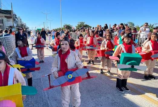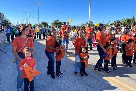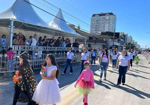 com temas que incluem leitura, paz, brincadeiras e projetos, jovens e crianças celebram Navegantes durante o desfile.