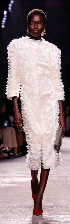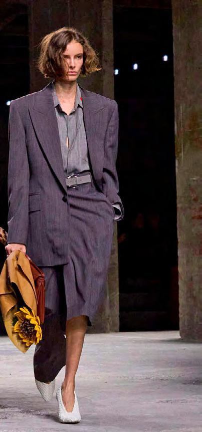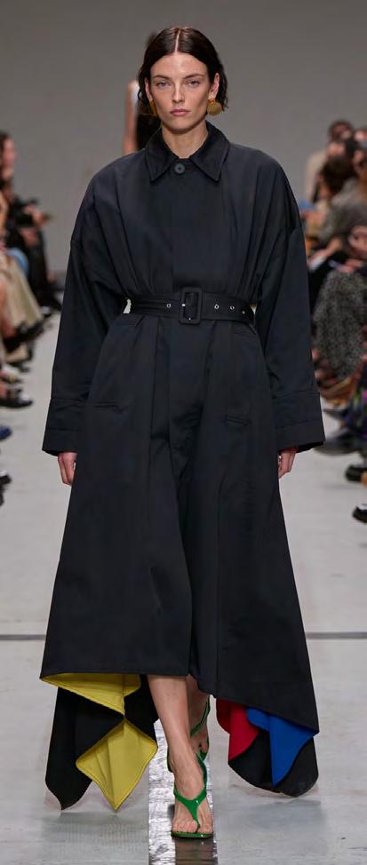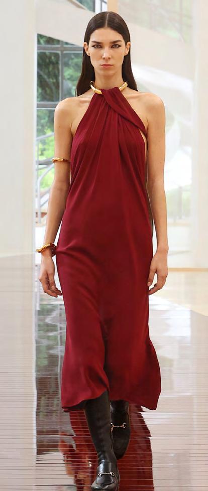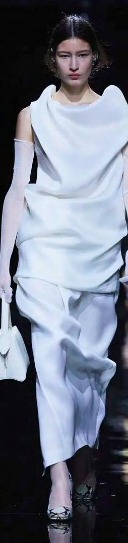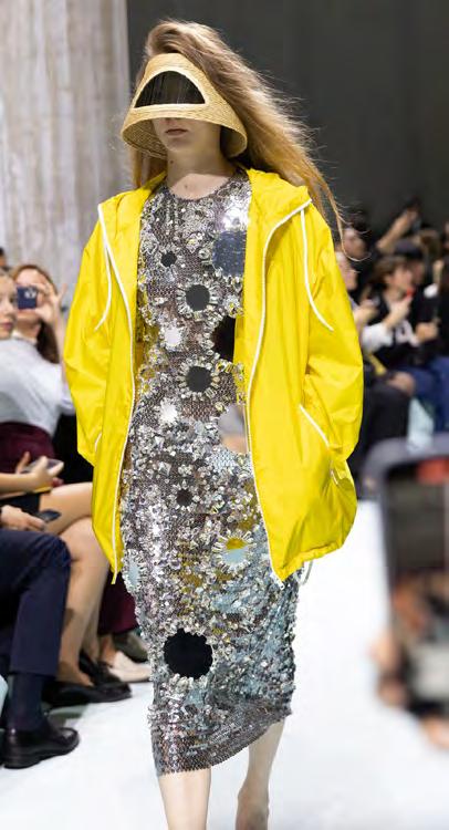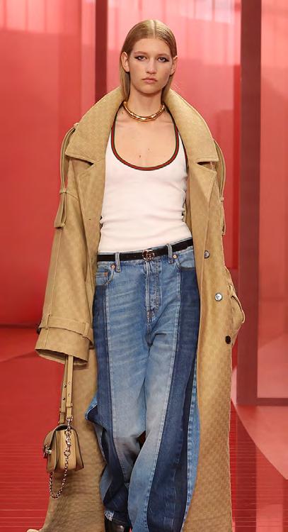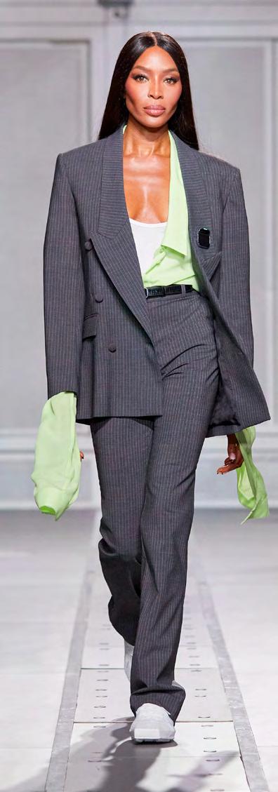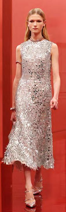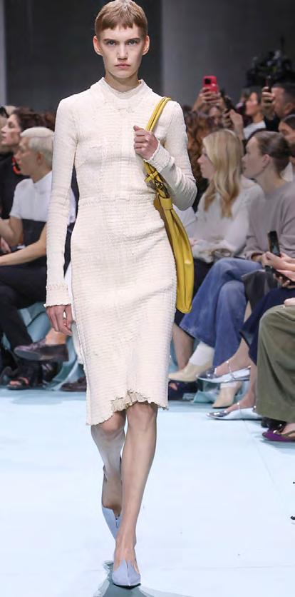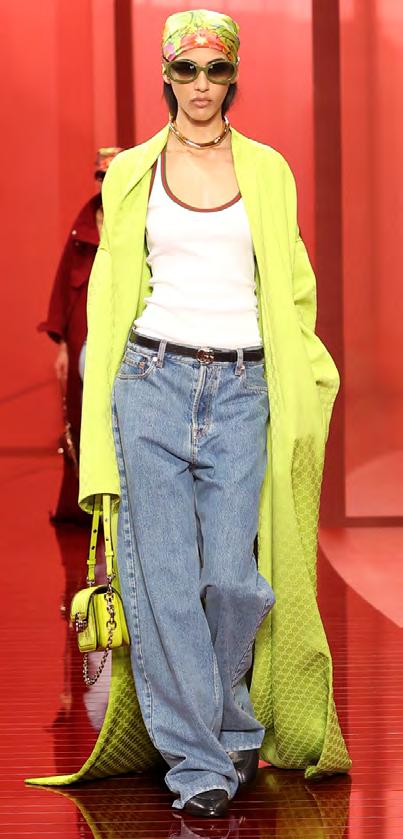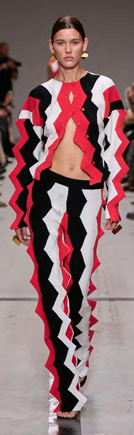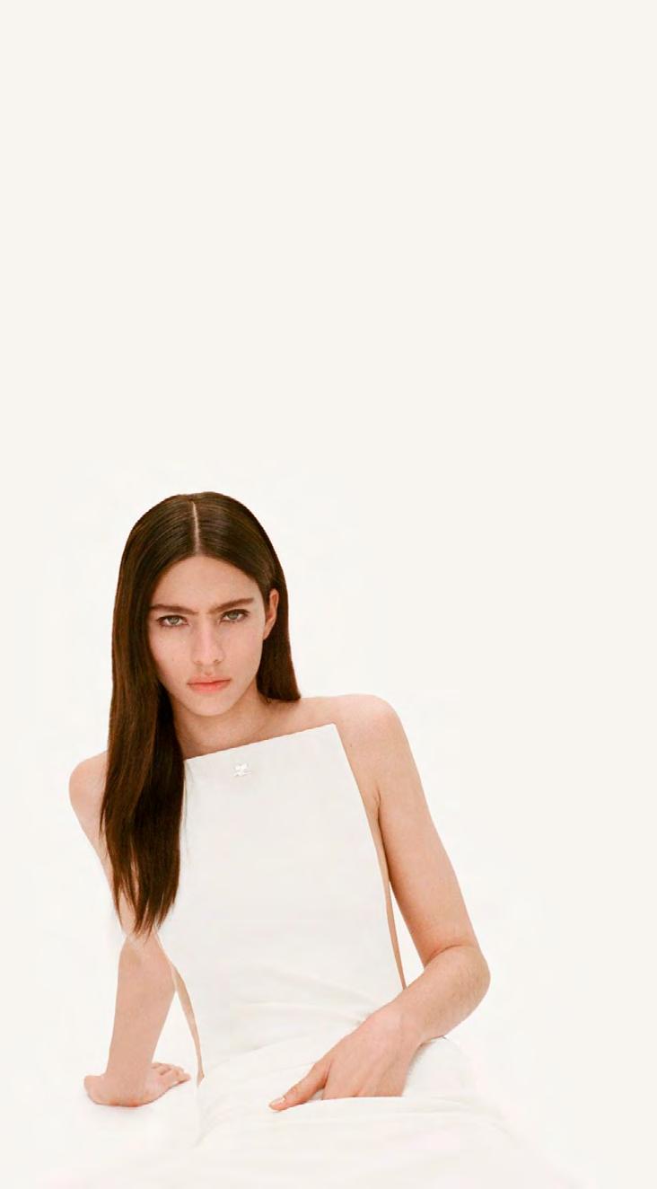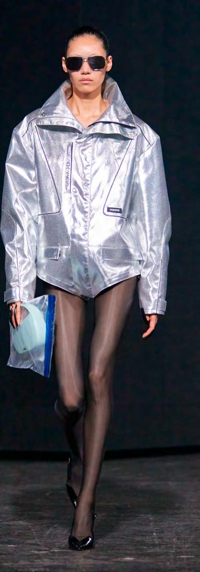 Las siluetas limpias, el uso innovador del vinilo y la paleta de colores futuristas, como el blanco óptico y los metálicos, defnen el nuevo lenguaje visual de la marca. Esta reimaginación de Courrèges respeta, por un lado, el legado de la casa de moda, mientras se lanza hacia el futuro con innovadoras tipologías, consolidándola como una de las marcas más cool del momento.