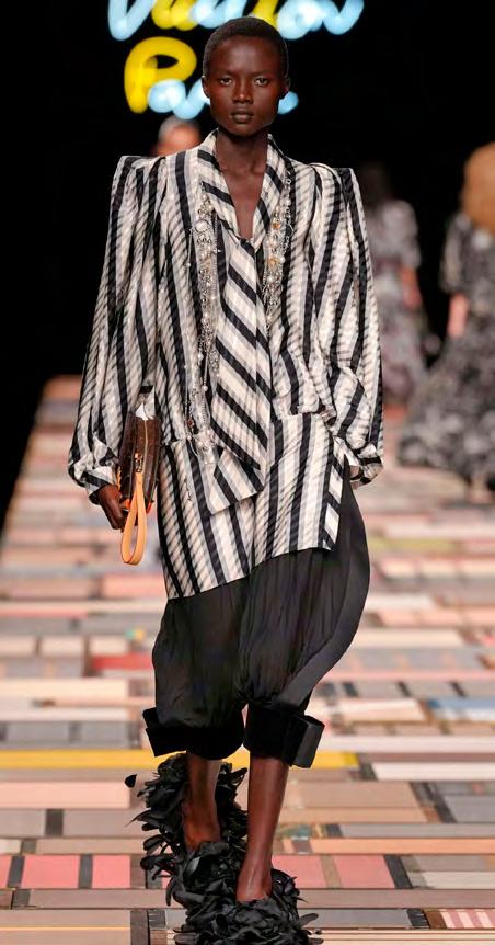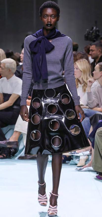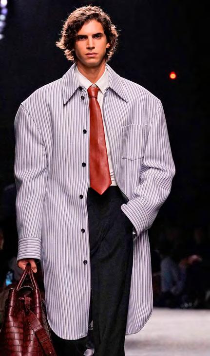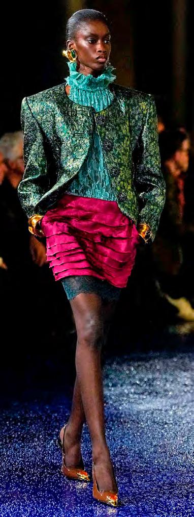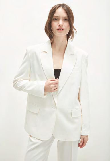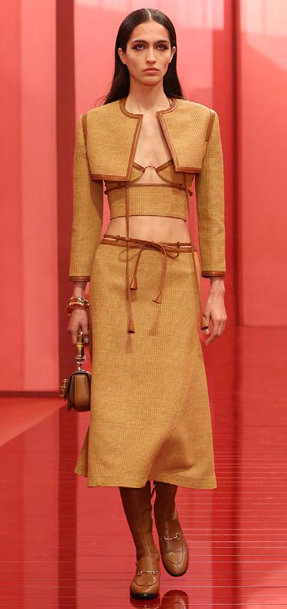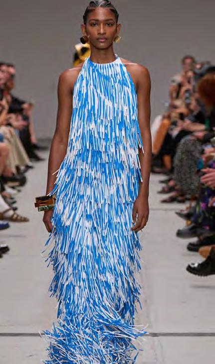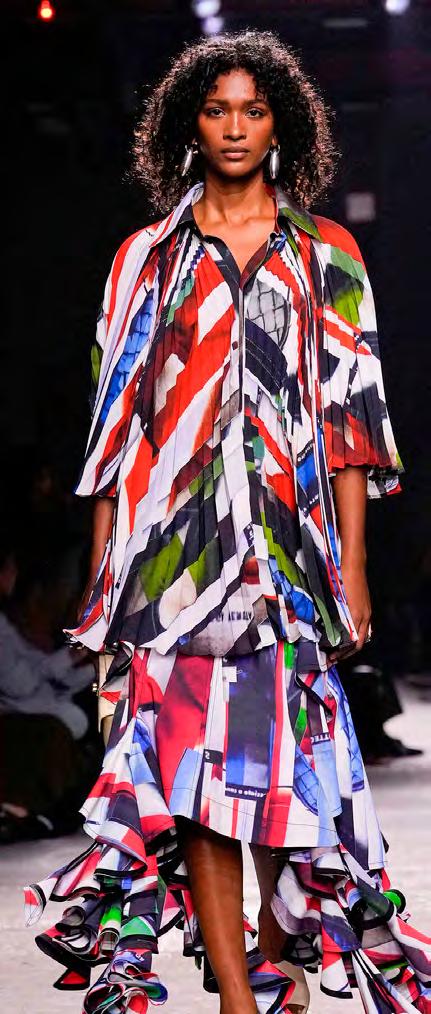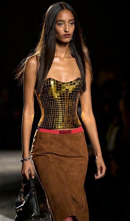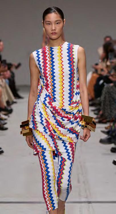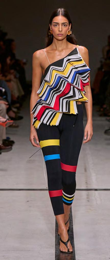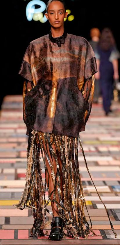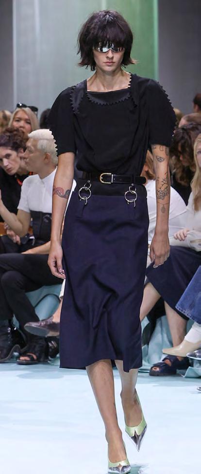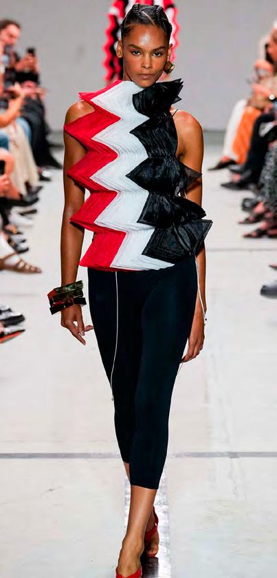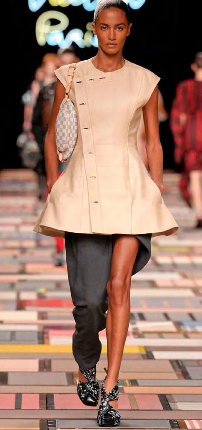 Las siluetas limpias, el uso innovador del vinilo y la paleta de colores futuristas, como el blanco óptico y los metálicos, defnen el nuevo lenguaje visual de la marca. Esta reimaginación de Courrèges respeta, por un lado, el legado de la casa de moda, mientras se lanza hacia el futuro con innovadoras tipologías, consolidándola como una de las marcas más cool del momento.