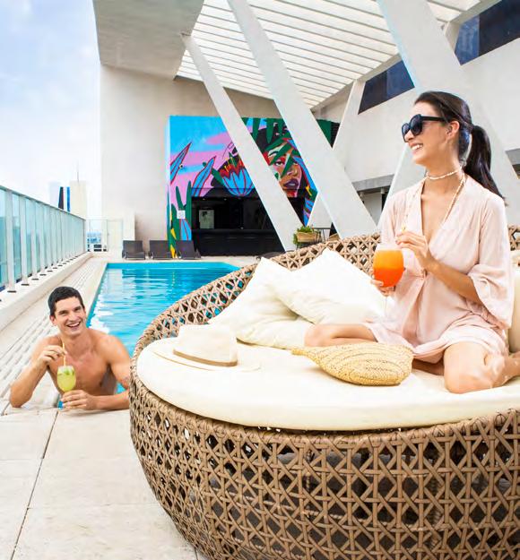 Uno de sus mayores atractivos es su espectacular rooftop en el piso 15, desde donde se puede admirar el skyline asunceno: una composición de modernos edificios que contrastan con la exuberante naturaleza que caracteriza a la capital. Esta terraza cuenta además con un snack bar, desde donde se puede disfrutar de tragos y snacks junto a su amplia piscina, para relajarse bajo el sol.