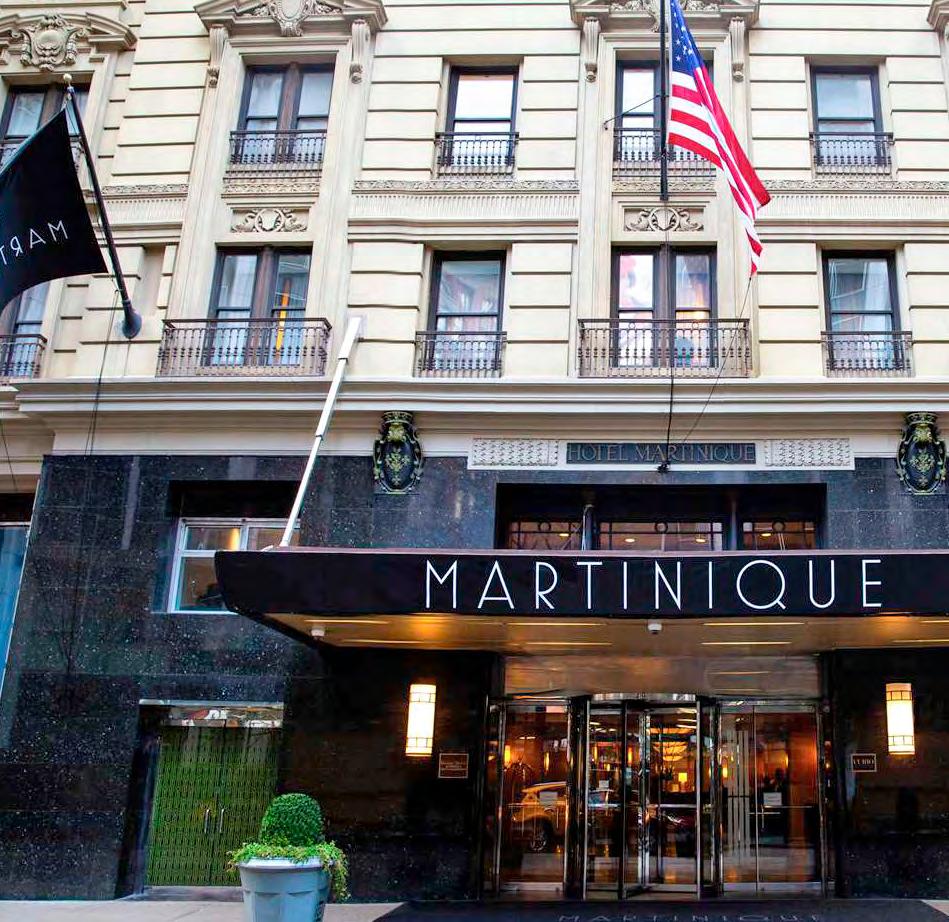 onstruido en 1898, el Martinique New York es un hotel de estilo renacentista francés, inspirado en los grandes castillos, en donde se ve mucho dorado, mosaicos y llama la atención una escalera de diseño refnado y encanto único. A lo largo de los años, recibió a estrellas de vodevil, dramaturgos y artistas. Fue el lugar de fundación de la Asociación de Golfstas Profesionales (PGA).