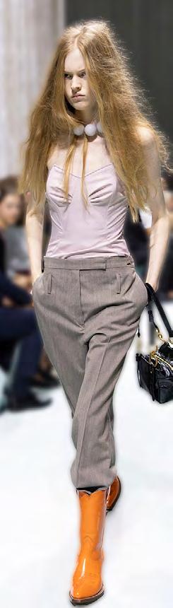 Se redefne esta vez en una línea más chic con vestidos holgados, prendas con vuelos y cortes irregulares combinadas con botas.