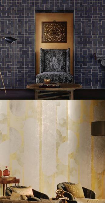 • Los revestimientos de pared Fretwork y Gilded Ascent por Phillip Jeffries tienen una de mis combinaciones favoritas de material que es madera con tonos metálicos. Son hechos a mano lo cual los hace artesanal. Son revestimiento en estilo Art Deco el cual es de mis favoritos.