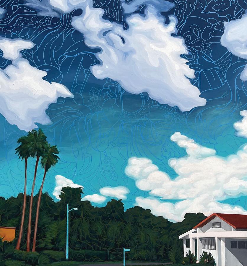 “Al entrar, encontramos en el recibidor una obra de la artista Zilia Sánchez, flanqueada por un sistema wall & door en madera. Seleccioné el color del papel decorativo en tonos azul marino, e integré un tronco de madera y follaje inspirándome en el fondo de la laguna.”