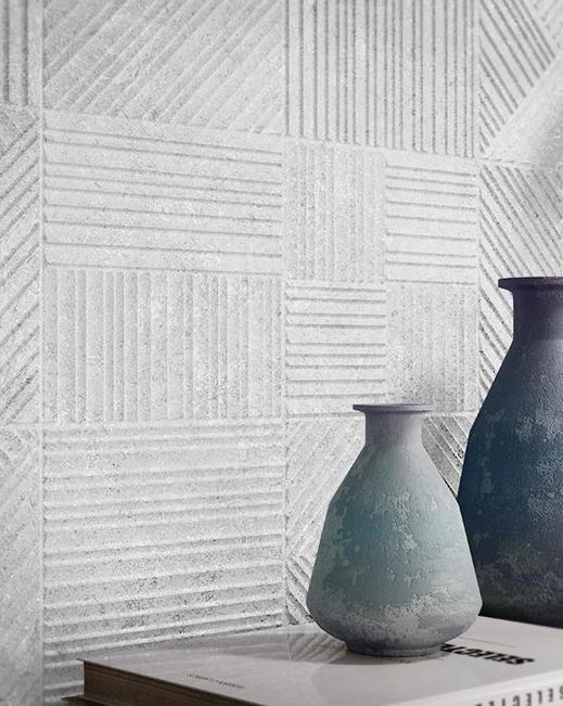 Como elemento focal y cultural, una pared con patrón mediterráneo delineado por paneles de madera causa impacto en este espacio a gran escala.