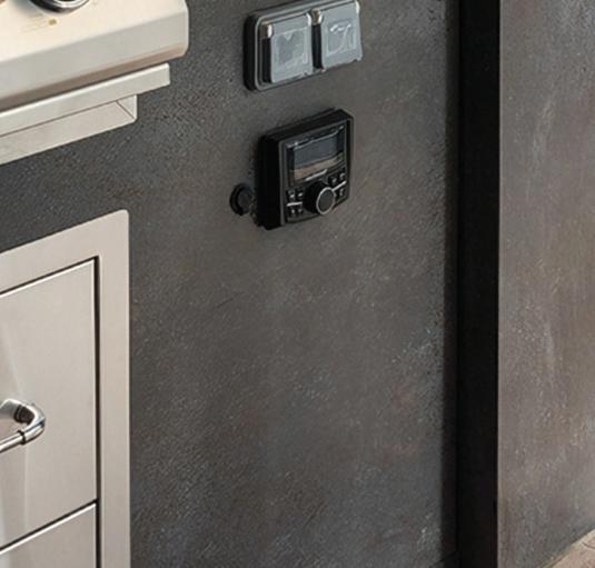 La cocina abierta es visible desde el comedor y conecta con el patio y cocina exterior. Las decisiones de diseño de Bárbara presentan el fondo moderno de la cocina con una hermosa losa de mármol blanco, el mismo mármol utilizado para crear la isla tipo cascada, dándole uniformidad y elegancia al espacio.