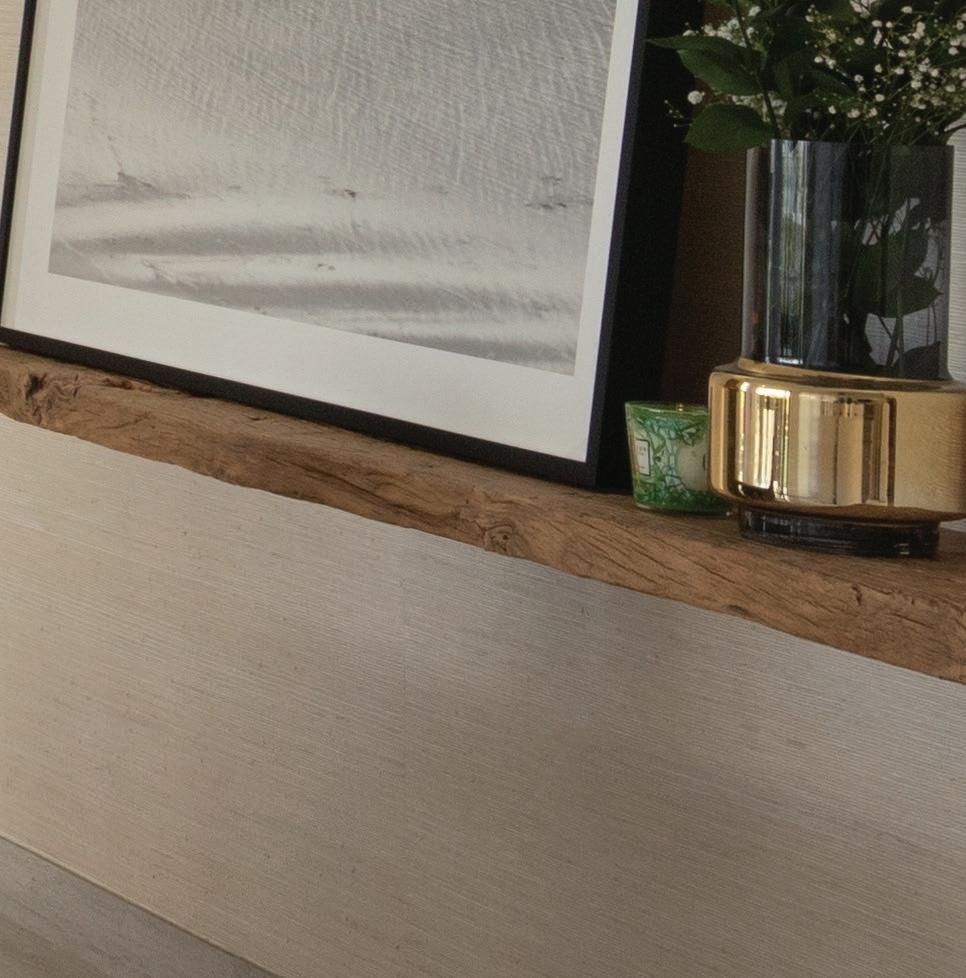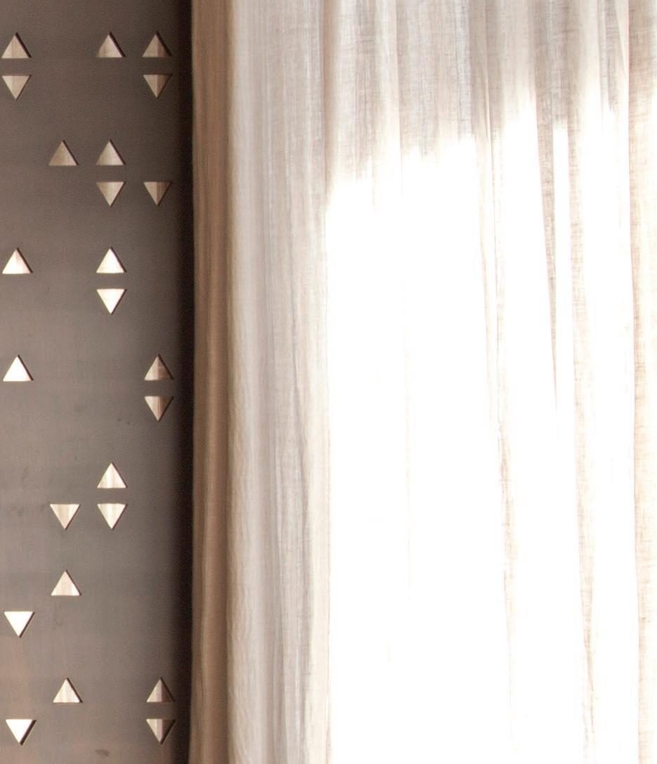 Como propietaria de Caro Bennazar Home, supo perfectamente cómo atender a estos clientes a través de la estética y las líneas exclusivas de su tienda. Comenzando con la entrada, es un prólogo sensorial de lo que está por venir: cortinas claras que bañan la casa de frescura y luz, y paredes revestidas con papeles decorativos que añaden textura y carácter. Una consola en madera rescatada italiana actúa como pieza ancla, introduciendo la esencia de la naturaleza al recorrido.