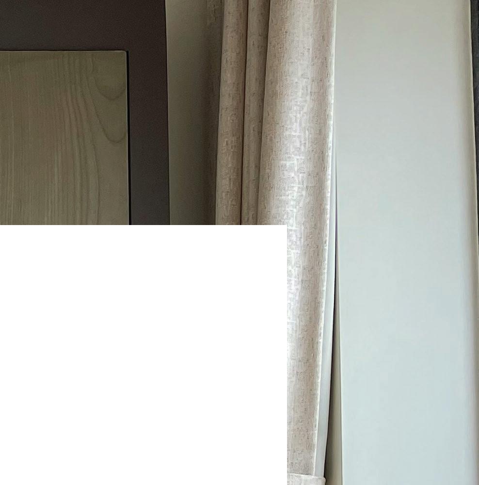 Interior designer Caro Bennazar masterfully crafted a home that balances neutrality with immediate visual impact. By focusing on her curated selections from Caro Bennazar Home, she infused the space with a distinct personality. The entrance captivates with light, airy curtains and textured wallpaper, while a reclaimed Italian wood console introduces organic elements. In the living area, dramatic hand-blown lamps float above, harmonizing with nature-inspired decor, exemplifying her thoughtful approach.