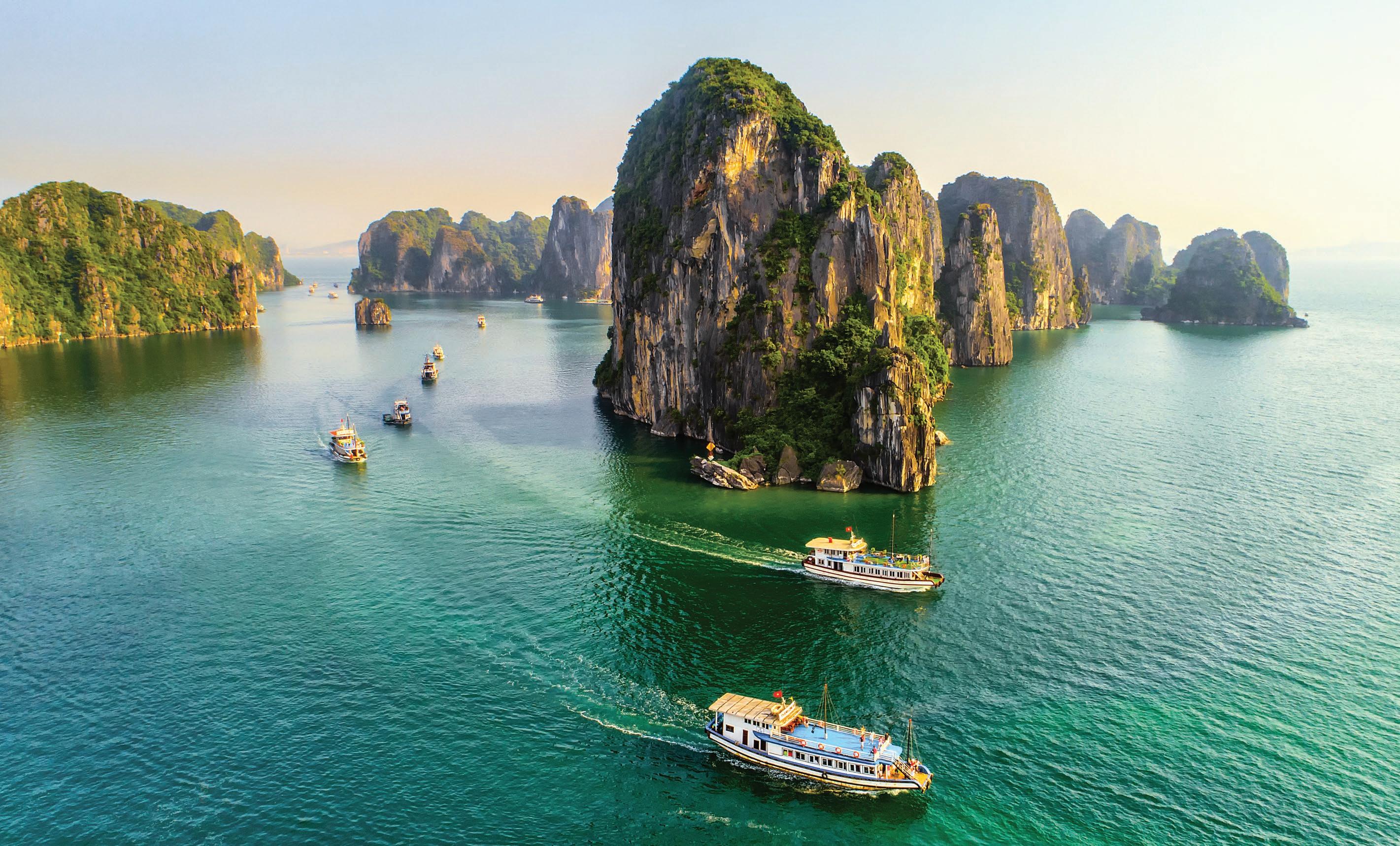 Con sus impresionantes formaciones de piedra caliza emergiendo del agua esmeralda, esta bahía es un ejemplo perfecto de la fusión entre la naturaleza y el diseño.