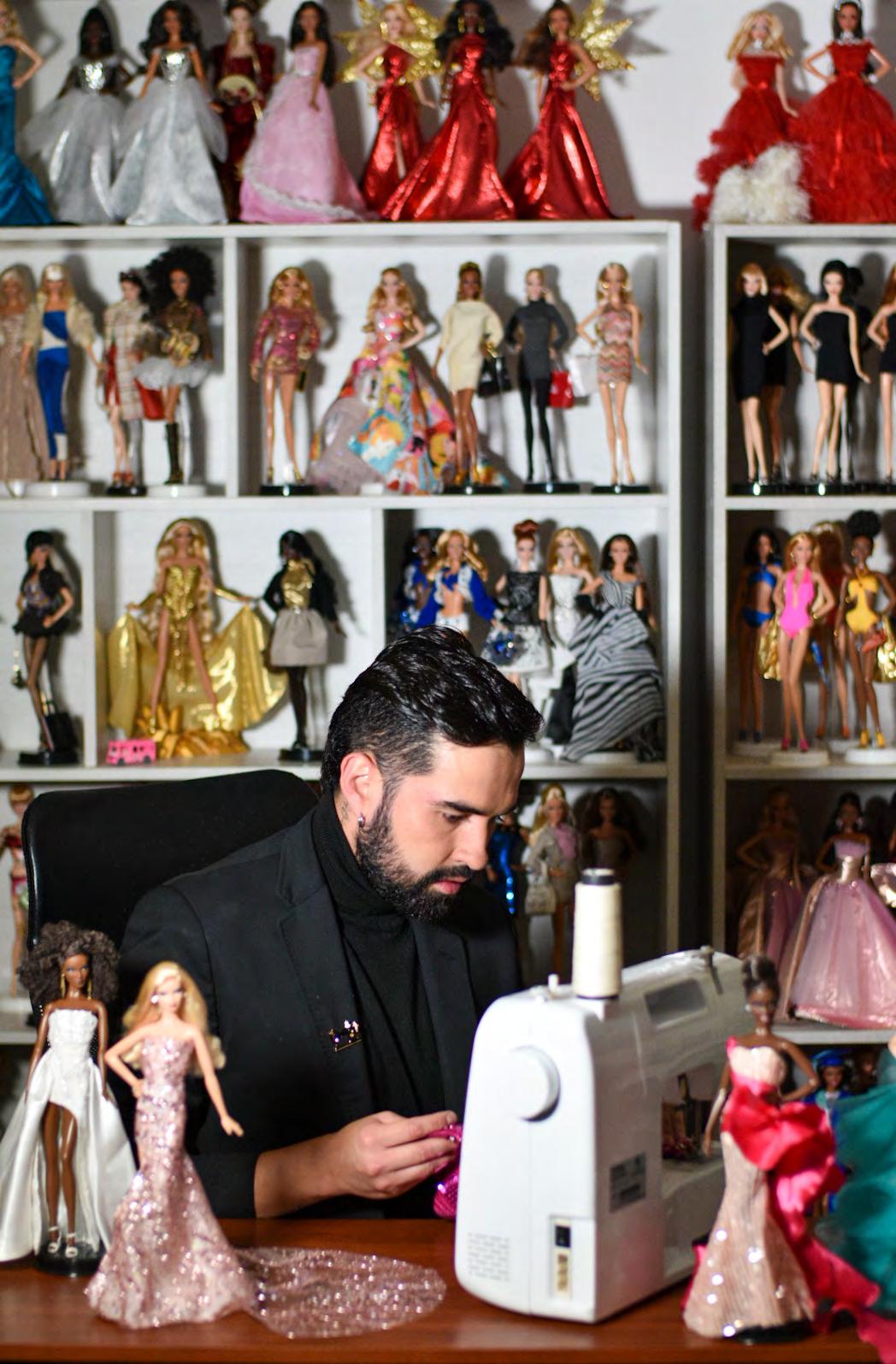 un trabajo que él toma muy en serio. Tiene más de 300 muñecas a las que les crea estilos, moda, tendencias, y ya realizó la primera versión de Miss Universe Barbie.