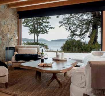 En su construcción y diseño se respetó a rajatabla la arquitectura típica del sur, con materiales típicos de la zona y muchos muebles realizados por artesanos locales. Desde el principio hubo sintonía con los dueños y los profesionales, arquitectos y decoradoras, lo que permitió que el diseño fluyera, con los resultados a la vista. La decoración es una mezcla de muebles actuales con elementos clásicos, como los apliques y la araña de asta de la cocina. Cada cosa fue elegida cuidadosamente, incluyendo las sábanas, platos, cubiertos. El proyecto y realización de interiorismo fue de María Silvia y Milagros Loitegui, mientras que el diseño arquitectónico fue obra de Ignacio Benavides y Juan Carlos Rezzonico.