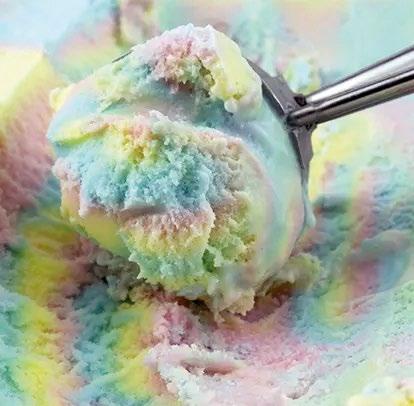 Aún más extravagante es el helado que cambia de color mientras lo comes. Un ejemplo de esto es el "Xameleon", que pasa de azul a rosa y luego a púrpura a medida que lo disfrutas.