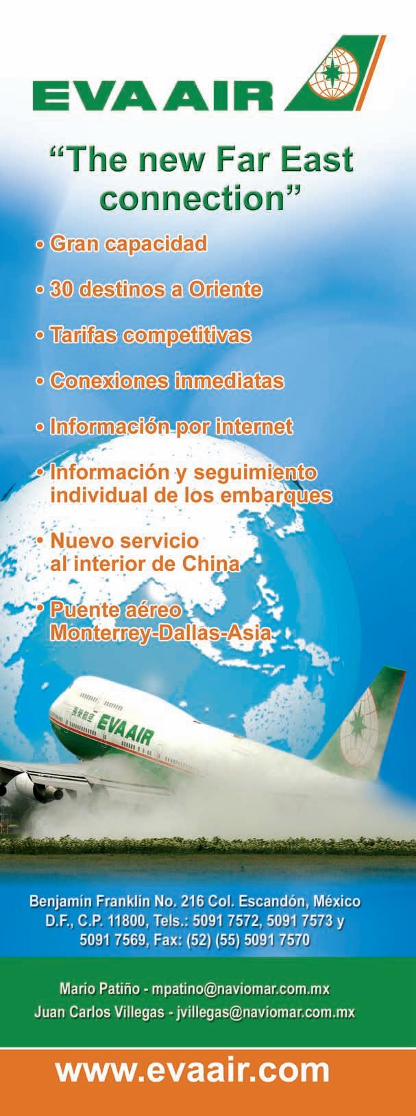 ElobjetivodeDHLesimportarmateriasprimas,refaccionesyproductoterminado,desdeAsiaaMéxicocontiemposde tránsitode48hasta72horas,contotal visibilidaddelenvío,costoscompetitivosy conunsolopuntodecontactopuertaa puerta. PorEnriqueTorres.