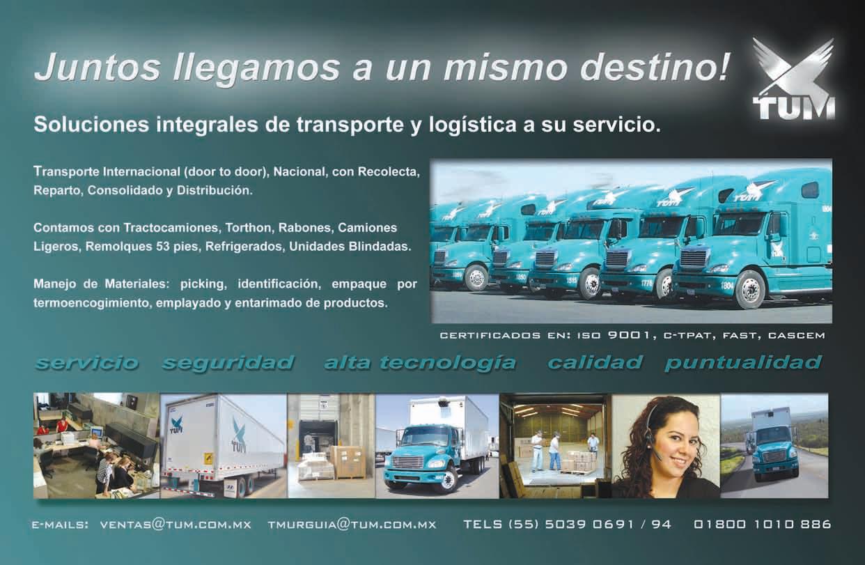 Deberíandesapareceralgunasempresas logísticasdetransporte,queofrecenserviciossintenercamionesyestoesun cáncerparaeltransportequehaayudado enmuchoalquebrantodelautotransportemexicano.Cómoesposiblequefacturenmillonesdepesosynotienencamiones.Lapreguntaes¿pagaranimpuestos? AdolfoTorres