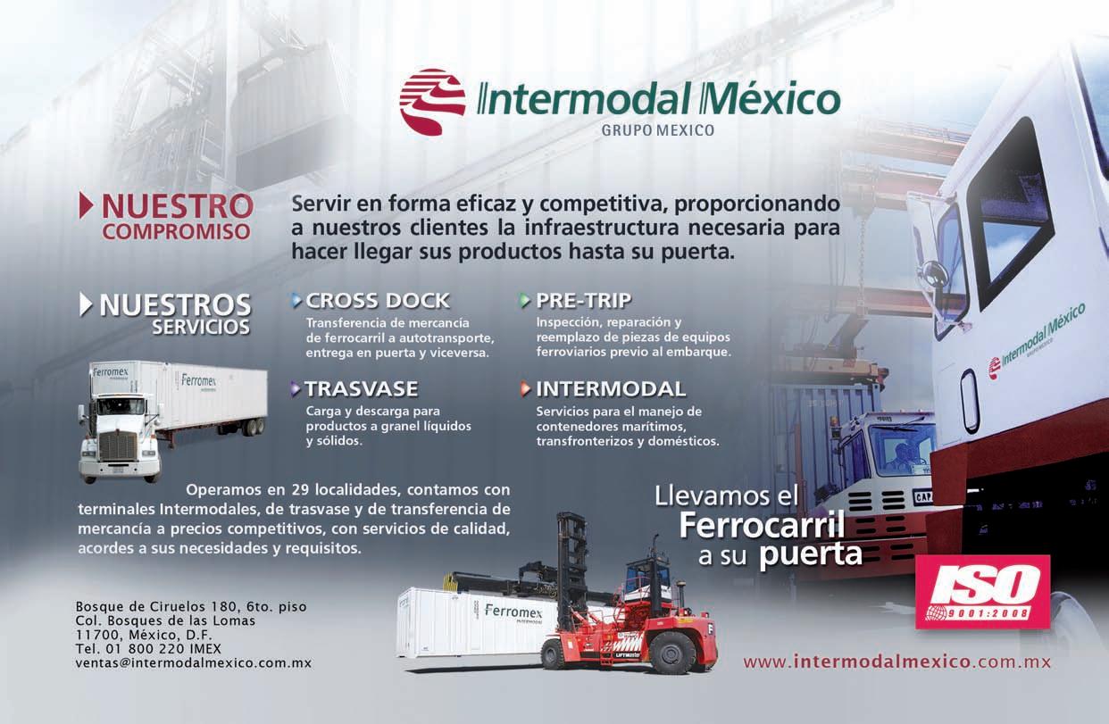 “Hoylasempresasponenmuchoénfasisen losserviciosferroviarios,inclusiveestán tomandolasdecisionesmásimportantesde dóndeestablecerseenfunciónasilalocalidadtienelascondicioneslogísticas,yprincipalmenteestánbuscandolosaccesosferroviarios”,comentaFernandoRamos,presidentedelaAsociaciónMexicanadel TransporteIntermodal(AMTI).
