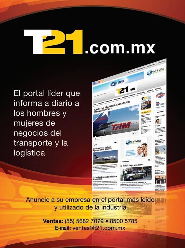 LloydInternational,S.deR.L.deC.V. T21,Revistamensual,Enero2013.EditorResponsable:Osiel IsaíasCruzPacheco.RegistradaconelnúmerodeCertificado deReservaotorgadoporelInstitutoNacionaldeDerechode Autor:04-2011-111513242600-102.Númerode CertificadodelicituddeTítulo:N°13495.Númerode CertificadodelicituddeContenido:N°11068.Númerode ISSN:1870-5669 DomiciliodelaPublicación:LuzSaviñon N°1707Col.Narvarte,C.P.03020,BenitoJuárez,México D.F.,Tels.(55)56823989,24553775y55369960email:redaccion@t21.com.mx,DomicilioenEU4115.12th streetNo.207McAllen,Texas,C.P.78501 Distribuidaen MéxicoporDifesa,condomicilioenAmadoPaniaguaN°43 Col.Moctezuma1ª.SecciónC.P.15500,MéxicoD.F.Fechade impresiónDiciembrede2012 TODOSLOSDERECHOSRESERVADOS.Prohibidalareproducciónparcialototalsinelpermisoexpresodeloseditores.Los artículosfirmadossonresponsabilidadabsolutadelosautoresy noreflejanlaposicióndeloseditores.Tiraje.7,000ejemplares