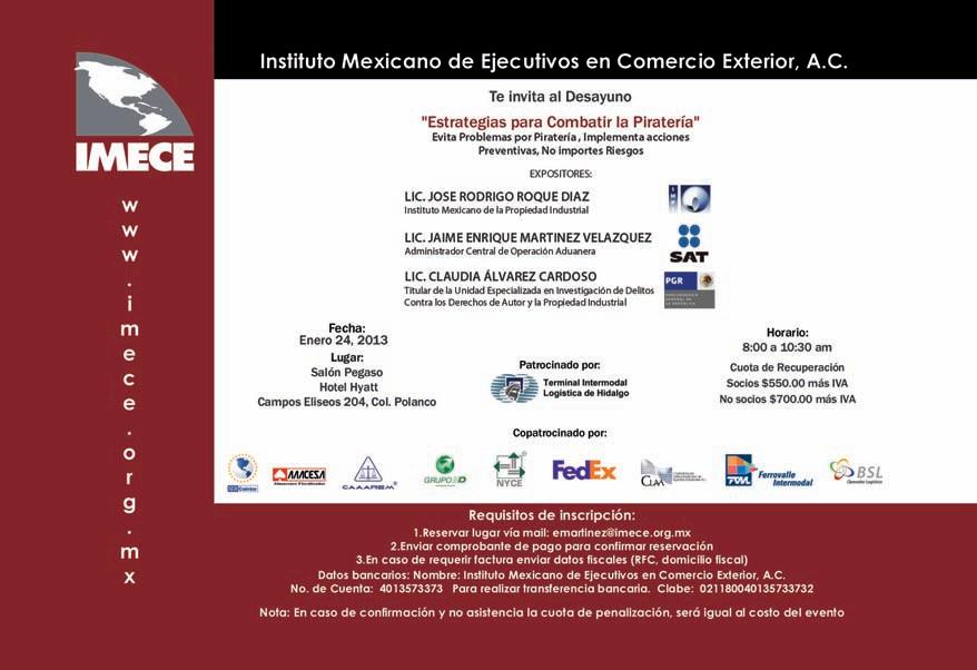 EduardoAsperóZanella, PacerStacktrain LeonardoGómez, ANTP DavidMartínez, CSCMP FernandoRamos, BorderlessConsultingGroup GuillermoRubio, Prointec EnriqueMignon, OmniTRACS RicardoDadoo, DadooLogistics JuanManuelRodríguezAnza, RegionalCargo JoséMedina, WTCConfianza EutimioFernández, Jumex Firmas