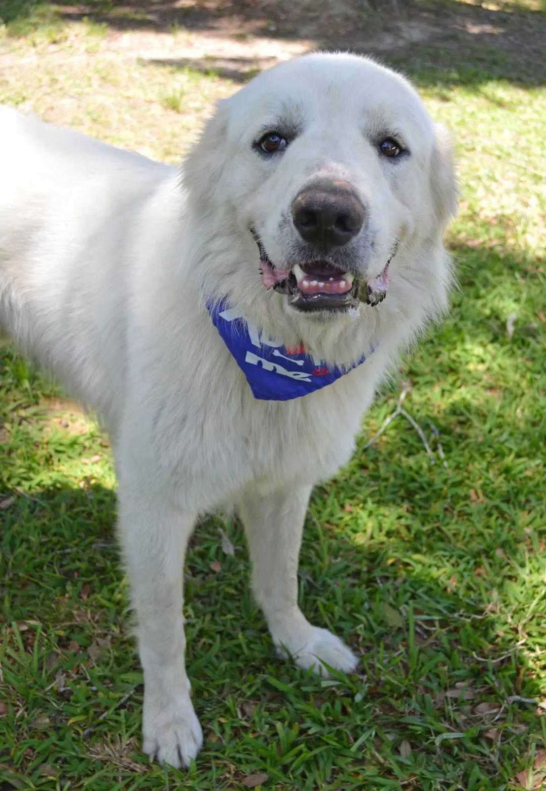 18 months old, Great Pyrenees 90 lbs & needs to put on some more pounds to reach his ideal weight. Cratetrained, housetrained and walks well on a leash without pulling. He would be ideal in so many homes! He’s a VERY good boy who’s good with all people, dogs, but no feline friends for Monte.