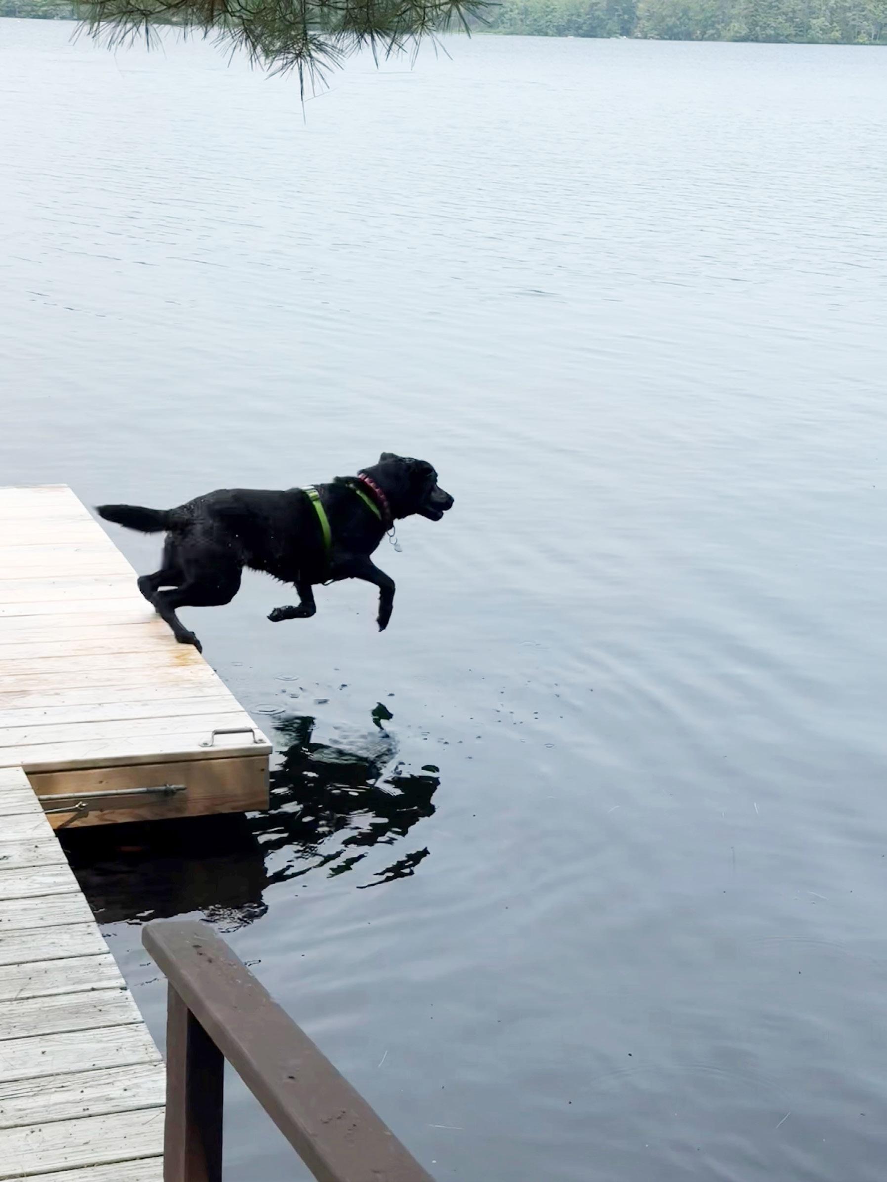 She has had a handful of swims in the lake so far. I do notice she is slowing down some but she is eleven and overall, she still has quite a lot of energy and is showing very little gray.