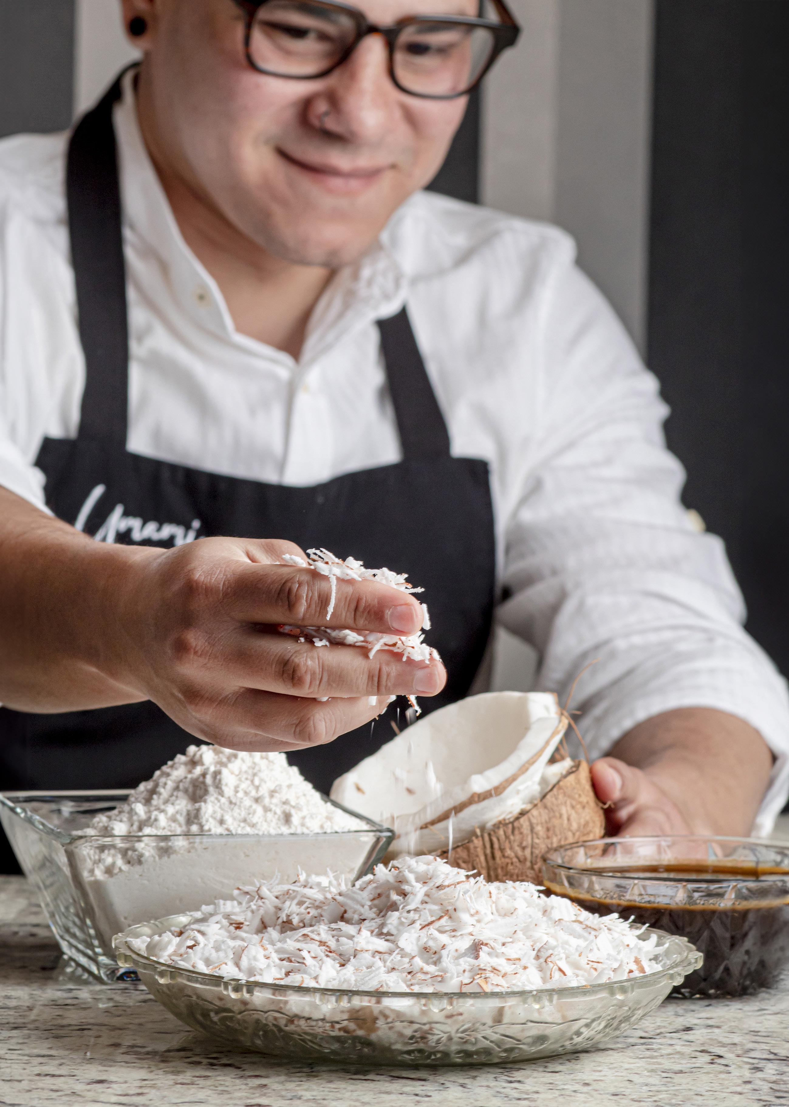 En este sentido, el también académico y artista plástico cuenta que aquí ha descubierto “mucha fruta que no se cultiva en mi país, como el membrillo, la murtilla, la lúcuma. Cuando combino esos dos elementos, o elementos como el mango, el coco, que son muy del Caribe, entonces ahí