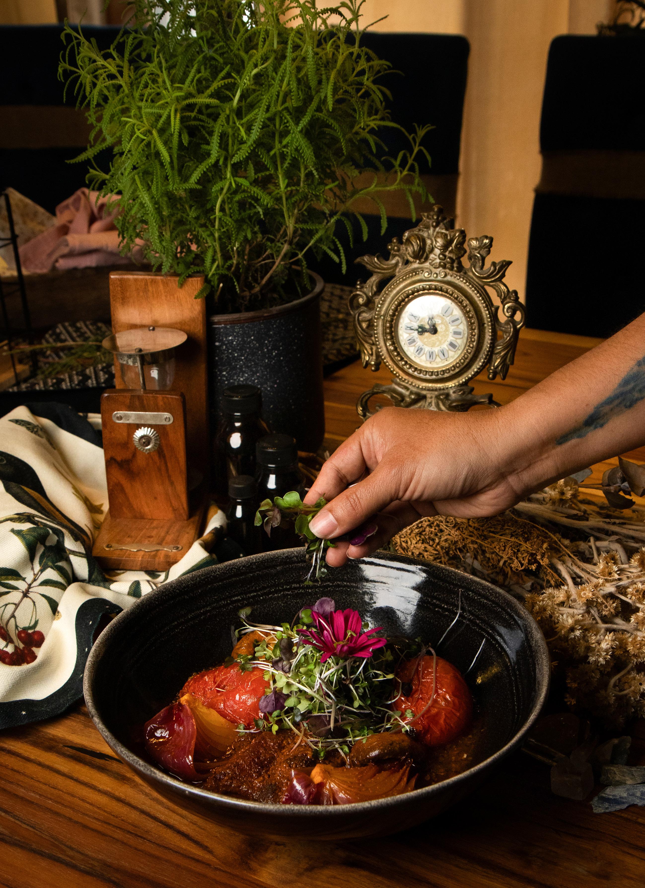 De esta manera, plantas como el eneldo, la hierbabuena, el tomillo y la menta, son incorporados en los diferentes métodos de preparación de los platillos de La Yerbatera, ya sea en marinados, tatemados, ahumados, macerados o infundidos en aceites, así las hierbas y especias son las que dan las notas para la sinfonía de sabor en los platos.