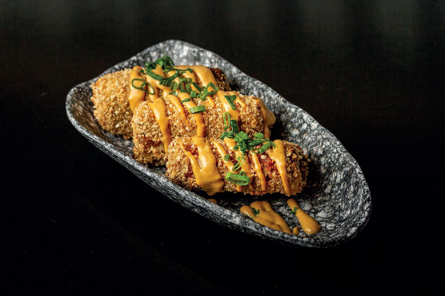 El siguiente tiempo, fueron las Calugas de Bacalao de Juan Fernández con mayonesa al Wasabi / Yuzu. “se fueron desarrollando solas a partir de nuestro sánguche de pescado frito. Nosotros realizamos varias pruebas con diferentes pescados, priorizando siempre que el pescado sea lo más fresco. Trabaja mos con las alternativas que nos ofrece la Caleta Portales, donde compramos siempre y