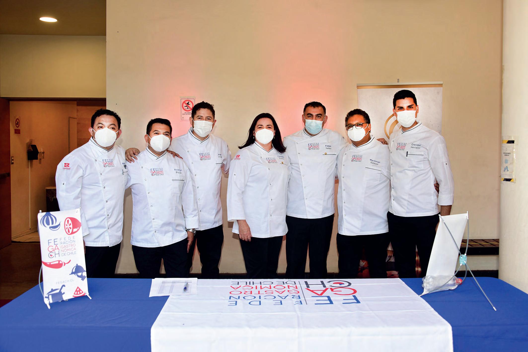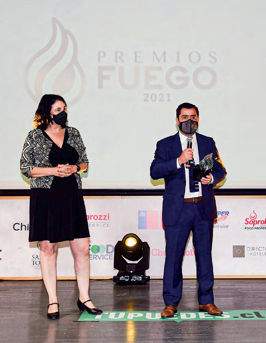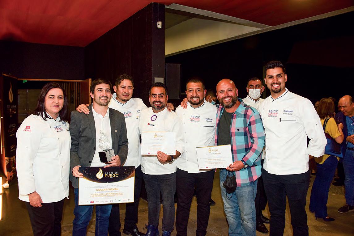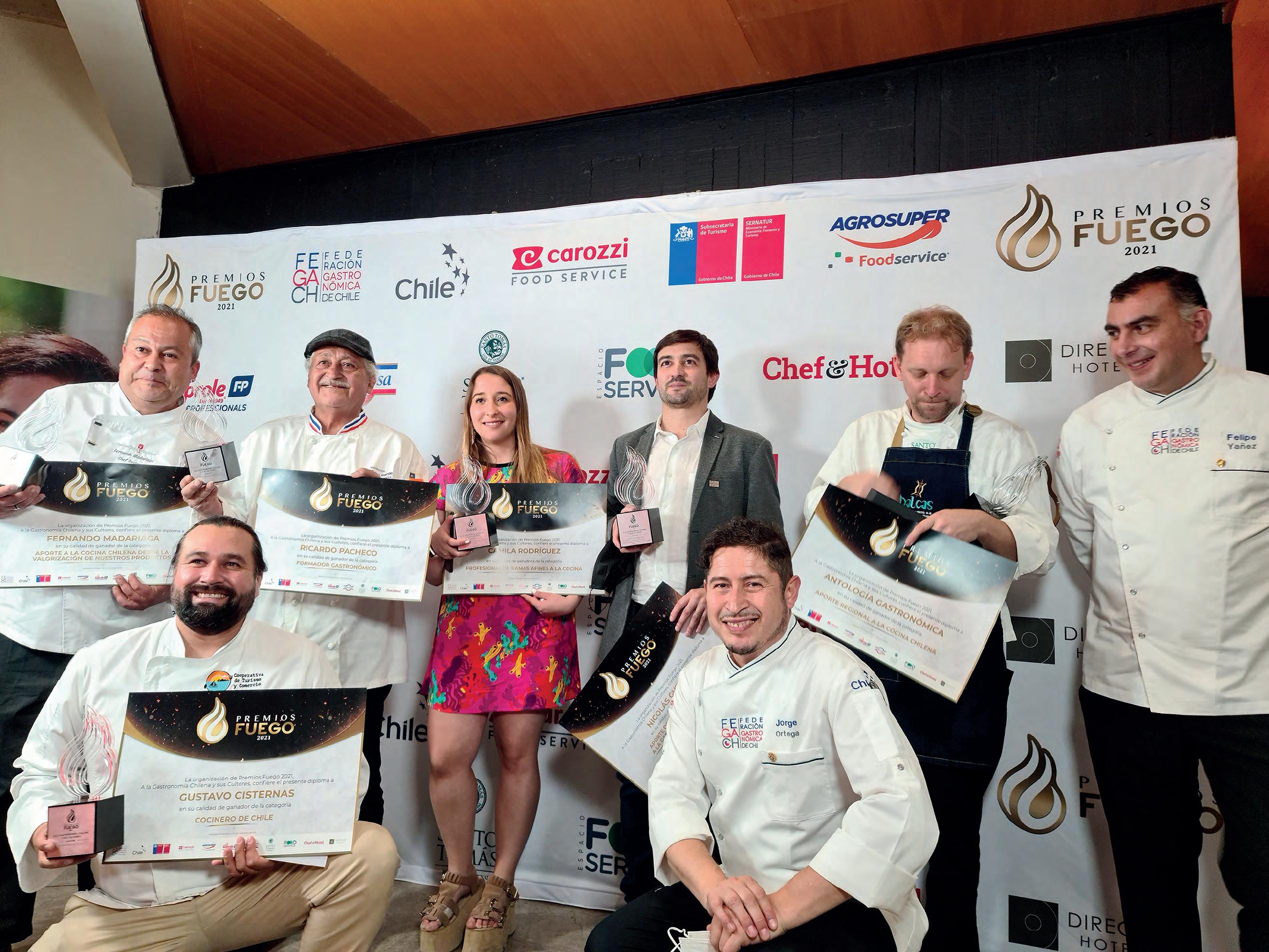 MIEMBROS DE FEGACH: Miguel Angel Provoste; Rodrigo Poza; Jorge Ortega Vidal, Director Ejecutivo; Claudia Patiño, Vice Presidenta; Felipe Yáñez Arellano, Presidente; Miguelangel Salazar, Secretario; y Cristobal Henríquez JORGE ORTEGA, Director de Fegach y animador de Premios Fuego DIMAS ÁVILES, Subgerente de Marketing en Empresas Carozzi S.A.En la ceremonia se recono ció el trabajo realizado por la Asociación Chilena de Gastronomía, ACHIGA, que ha ejercido un rol estratégico para levantar las necesidades de la industria.