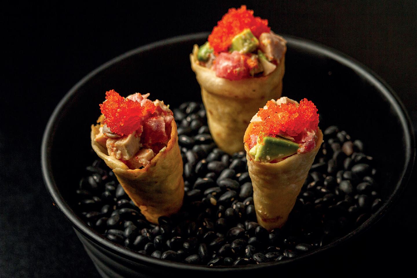 La experiencia culinaria continuó con Tequeños de Pollo Saltado y de Queso Ciboulette con salsa de Tamarindo. “Nuestros tequeños los fabricamos nosotros con recetas propias y con la manera de hacerlos que aprendí en Perú. El tequeño de pollo saltado, es la misma receta de nuestro sánguche de pollo saltado, que tiene pechuga de pollo, cebolla, tomate, ají amarillo, cilantro, ajo, jengibre, un toque de vinagre, y soya. El tequeño de queso es la mezcla de chanco y mozza rella, salsa bechamel y ciboulette”.