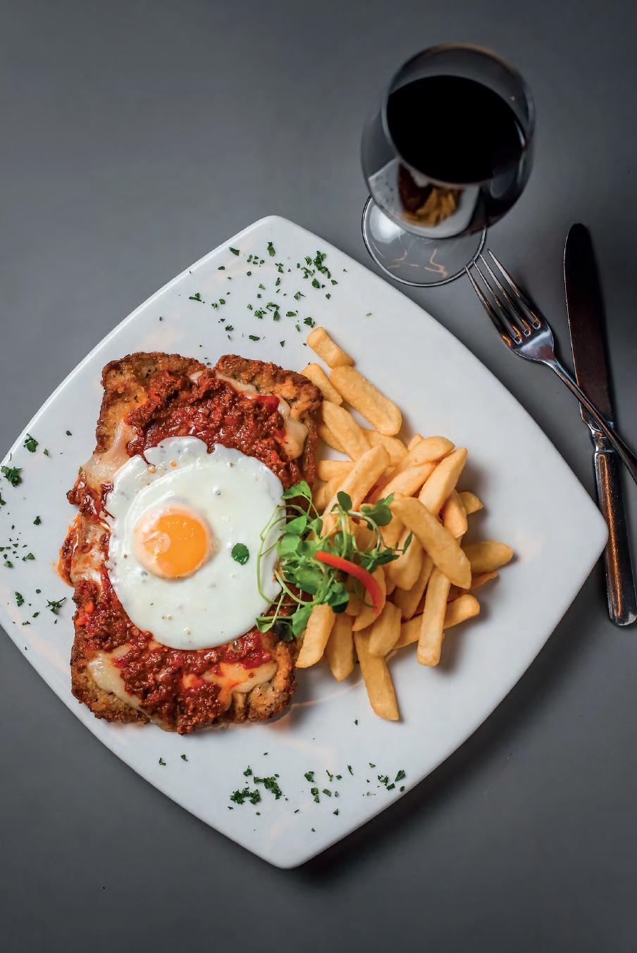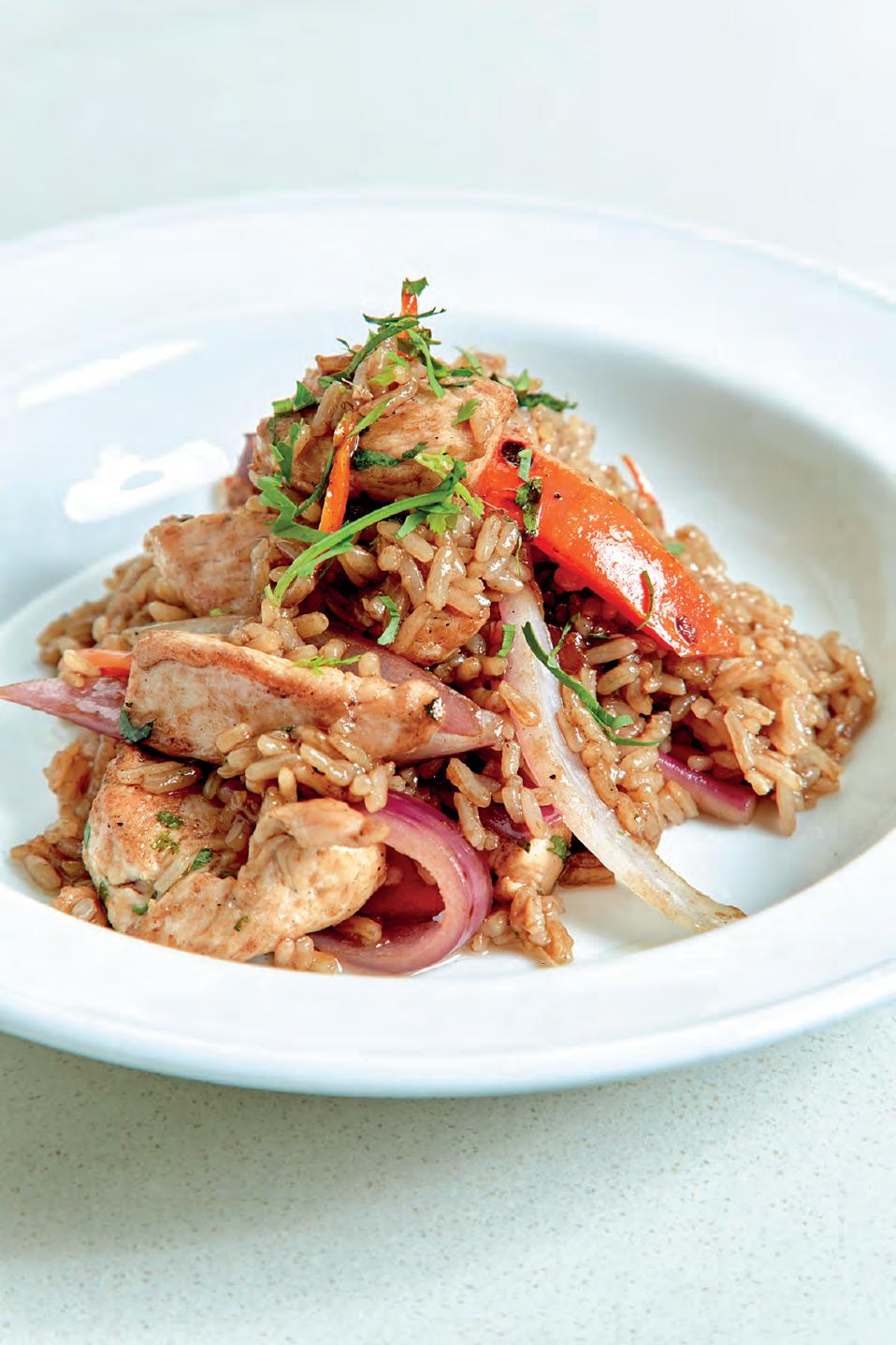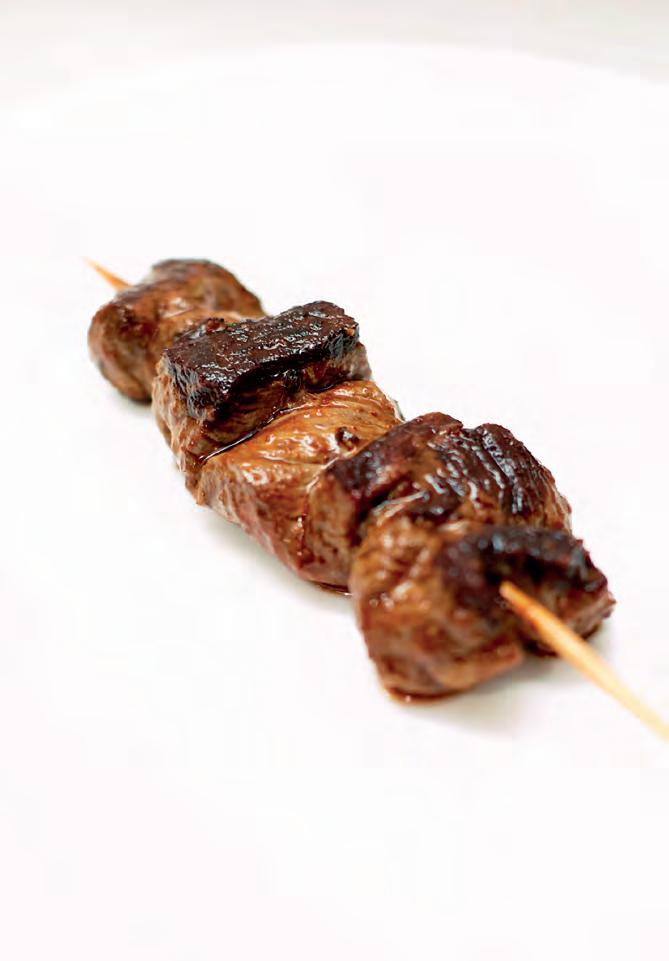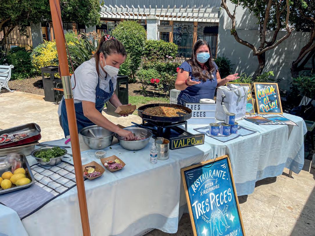 Incluyeron alternativas como el arroz con pollo saltado, “preparado de la misma manera que hacemos el pollo saltado y al final le agregamos arroz y se sirve todo mezclado y lo acompa ñamos de vino Adobe reserva Chardonnay 2019 D.O. Valle de Casablanca”. A continua ción, el Anticucho de lomo fino y doble sarza anticuche ra. “Otra sorpresa para nosotros fue el anticucho de filete, que tradicionalmente se prepara con corazón y se adoba con la salsa “anticu chera” que es una mezcla de ají panka, vinagre, comino, orégano, cerveza negra y pimienta”.