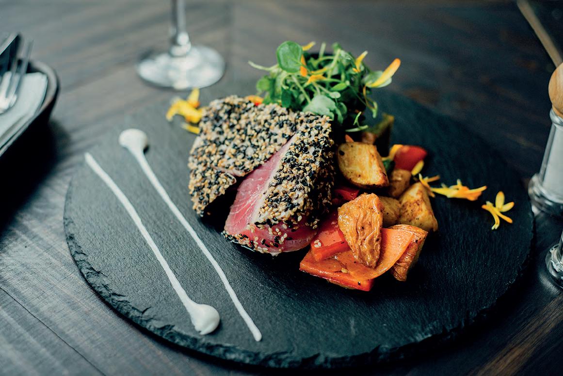 De aperitivo los comensa les pudieron elegir entre Pisco Sour, Maracuyá Sour, Chilcano, Piscola o Pistón (pisco con tónica), hechos con Pisco Waqar, D.O. Pisco Valle del Limarí, Tulahuén. “Nuestro pisco sour se hacen según la receta original. Además, existe una versión con maracuyá que es muy refrescante”. Igualmente, Sebastián menciona el Chilcano “combinado de pisco peruano con jugo de limón y Ginger Ale. La infaltable Piscola está presente, con un pisco único que es Black Heron, primer pisco ahumado del mundo y hecho pensando en nuestro