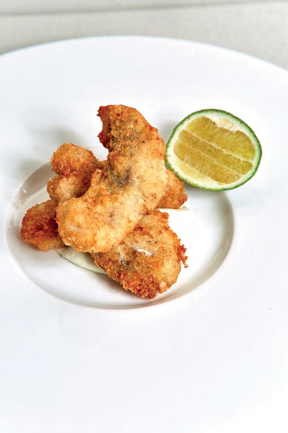 de nuestro aniversario preparamos el bacalao como calugas, sazonamos el pescado con jugo de limón, ajo, sal y pimienta negra, luego lo apanamos y freímos. La novedad fue la salsa que lo acompañó, una mayonesa casera de la casa, con la adición de wasabi, la raíz picante japonesa y yuzu, que es un cítrico japonés”. Se maridaron con cerveza Octopuzz Golden Ají, cerveza artesanal elaborada en Valparaíso, sin filtrar.