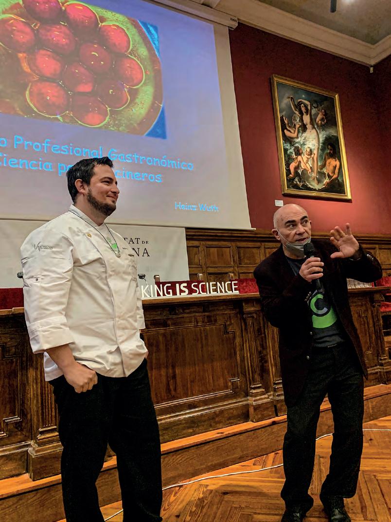 mente por sus libros “La cocina y los alimentos” y “Aromas del mundo: Una guía para narices inquietas”, fue nombrado Presidente Honorario por su excelente labor divulgativa en el mundo de la ciencia y cocina. En su conferencia subrayó la importancia de las moléculas en nuestra alimentación y cómo al modificarlas es posible conducirnos a los maravillosos sabores que tenemos y sentimos cada día: “procesos químicos básicos como la combustión o la evaporación acaban generando nuevos olores que afectan directamente al sentido del gusto, descubriéndonos, en consecuencia, nuevos sabores cada vez”.