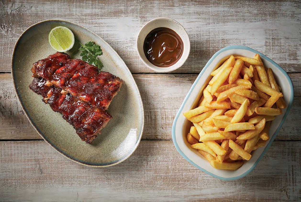 Para cerrar los fondos, vino el Costillar a la Leña con Puré de manzana y Salsa criolla. “El costillar de cerdo lo ahumamos en frío por 3
