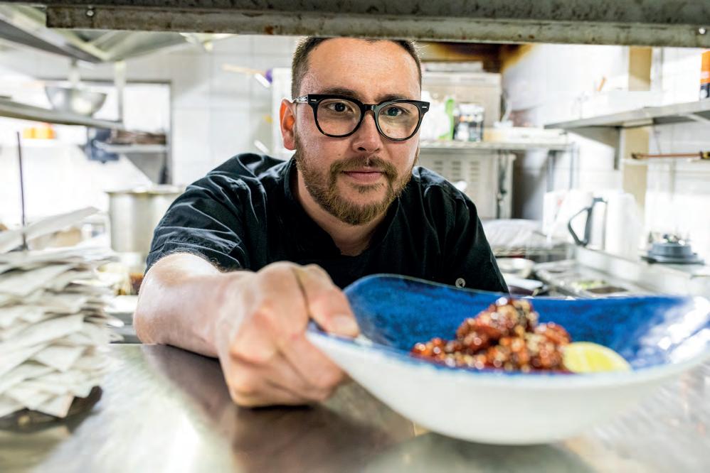 Choros y Criollos está ubicado en calle Esmeralda, “tenemos una sala pequeña, acogedora, donde tratamos de crear una atmósfera casual y bien cuidada. La capacidad es de 25 personas dentro del local y contamos con una pequeña terraza con 2 mesas”. Salas acota “desarrollamos una cocina clásica, siguiendo rigurosa mente las recetas tradiciona les en su ejecución e ingre dientes. En paralelo, avanza mos en dar vida a una línea de cervezas artesanales, le pusimos el nombre de Octopuzz”. Ronald Oliva es el maestro cervecero, quien desarrolló el concepto, “a partir de un diplomado en fabricación de cerveza en la
