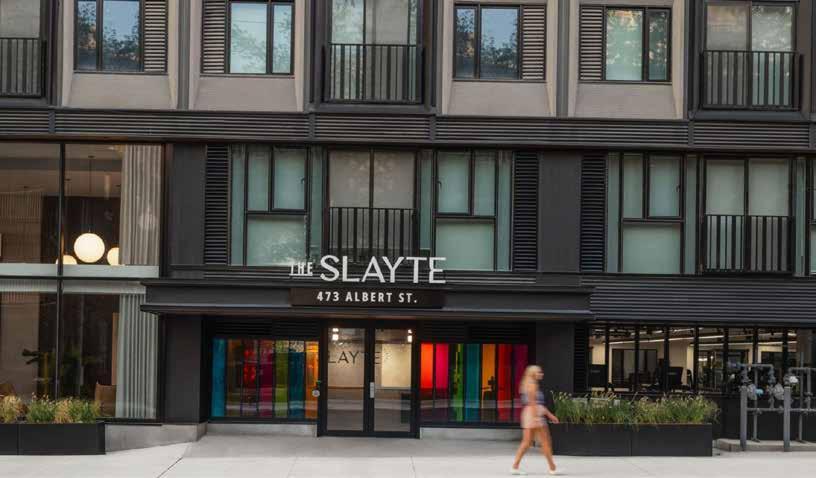 The Slayte is one of Ottawa’s first office-toresidential conversions, and according to McGahan was a major success. Construction on the project began in 2021 when CLV Group took a vacant 1970s office building and transformed it into the modern residential commu-