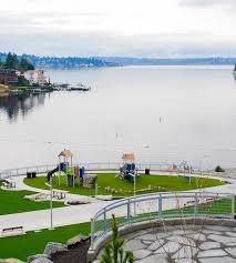 Meydenbauer Bay Park is a scenic waterfront park nestled along the shores of Lake Washington in Bellevue, Washington. Named after early settler William Meydenbauer, the park offers a blend of natural beauty and recreational amenities. Visitors can explore a network of both paved and unpaved trails, relax at picnic areas, or enjoy the playground and viewing terrace that overlook the tranquil bay The park also features a hillside woodland, a pedestrian pier extending into the lake and a designated swimming area along the