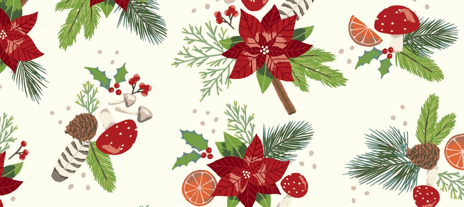 calm feeling and a natural touch to your holidays. Traditional florals, sprinklings of natural elements, along