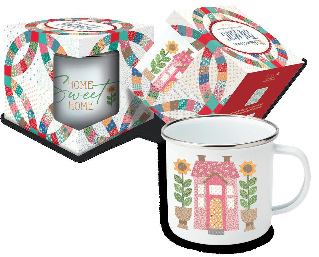 RILEY BLAKE DESIGNS 139 Home Town Tin Mug Available July 2023 ST-31087 • Delightful enamel tin mug • Perfect for your favorite beverage, or for storing pens and other items • Hand wash only • 20-ounces
