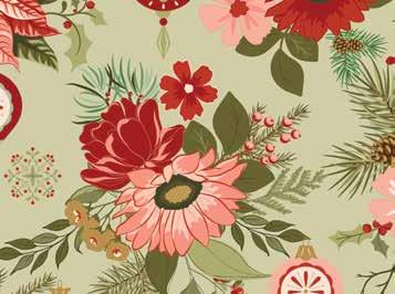 You’ll feel like walking in a winter wonderland with Glisten by Sandy Gervais of Pieces from My Heart. Celebrate the season with the joyful main print, as well as the coordinating prints of ornaments, flowers, holly, trees, stars and more! The festive palette of olive, blush, cream, mocha, red, and eggnog will warm your heart. The Glisten Wreath panel will be on everyone’s list, so don’t miss out! Start dreaming by the fire of all the Christmas-y quilts and projects you’ll create.