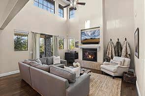 to common area w/ views into the Nat’l Forest. The kitchen is upgraded with Corian counters, a gas range, and SS appliances. Vaulted greatroom wood ceiling and grand gas F/P framed with stacked stone. Expansive decks. $510,000 (91334)