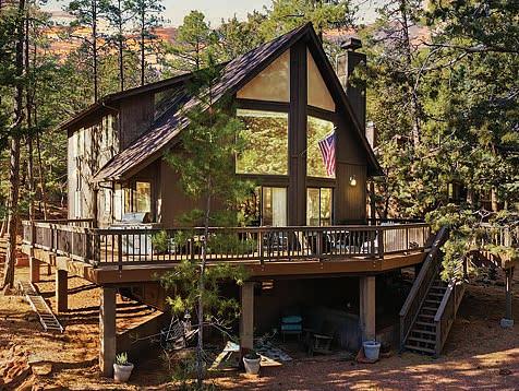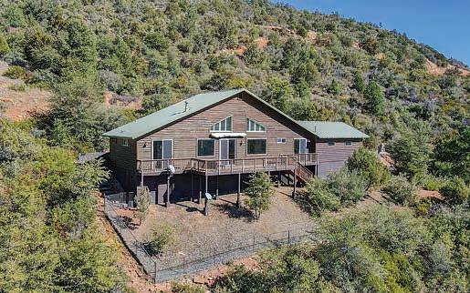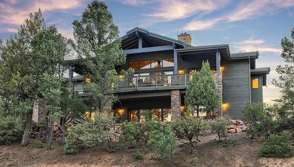 3465 N Whispering Pines Rd: Mountain retreat on a 0.43acre lot. 2BRs, 2 baths, 2½-car garage. Concrete board siding, metal roof, T&G ceilings, pellet stove, wall of windows with slider to deck w/ Mogollon Rim views. Granite counters, large island, pantry, fenced back yard w/ firepit. $769,000 (91777)