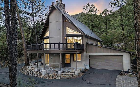 Exquisite site-built home that backs to National Forest land on a view lot in Kohl's Ranch within walking distance of Tonto Creek. This home was built in 2019 and features 1723 sf, 2BRs, 2 baths, a 1-car garage, a pellet stove, a generator, and more! $545,000 (92528)