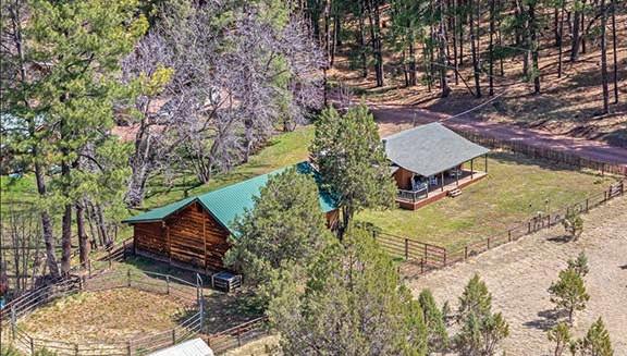 4941 Saddle Blanket, Happy Jack: 3BRs, 2 baths, 1513 sf, 2-car garage, all on a 1.46-acre cul-de-sac parcel in Starlight Pines. Log-sided, furnished, corrals, tack shed, horse wash area. $589,900 (92042)