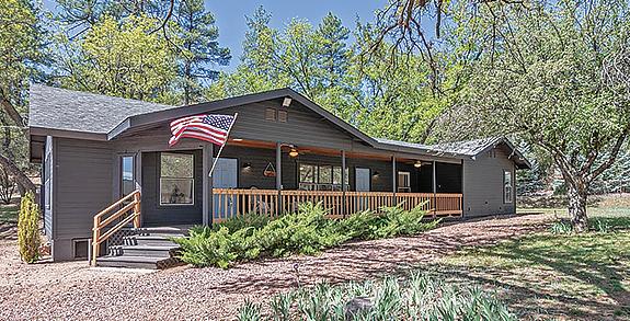 1018 Reata Pass, Happy Jack: 2BRs, 2 baths, 1616 sf and a 3-car garage w/ ½-bath, all on 1.06 nicely wooded, slightly sloped acres in Clear Creek Pines subdivision. Private well, new roof, flagstone patio, room for RV and horses. $549,000 (92727)
