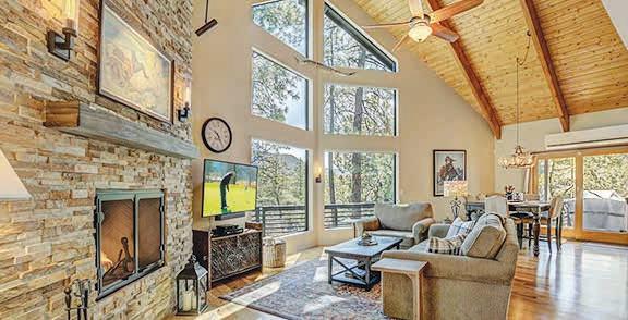 1873 Sugar Pine Drive, Happy Jack: 3BRs, 3 baths, 1714 sf, 1½-car garage, 0.92-acre parcel. Open-plan layout, natural light, wall of windows / doors, vaulted ceilings, cozy F/P, gourmet kitchen, covered patio and decking. $674,900 (92411)