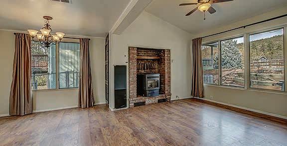 Panoramic Rim Views! 1914 square foot brick home has three bedrooms, two baths, wood floors, vaulted ceiling, a pellet stove, a covered patio, an attached twocar garage and an attached carport, all on a 0.43-acre lot with two sheds and fruit trees. $665,000 (91755)