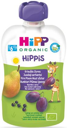 Ekologiška kriaušių, slyvų ir juodųjų serbentų tyrelė HIPP, nuo 6 mėn., 100 g (16,9 € / kg)